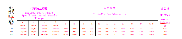 结构与特点: 应用于S-NPK复合肥系统中,具有结构简单,反应完全,使用寿命长等优点。采用改性呋喃树脂浸渍热处理,既耐酸又耐碱的腐蚀。管道反应器分I,II型两种。I型为立式安装;II型为卧式安装。 技术特性: 设计温度:≤200℃ 设计压力:≤0.6MPa